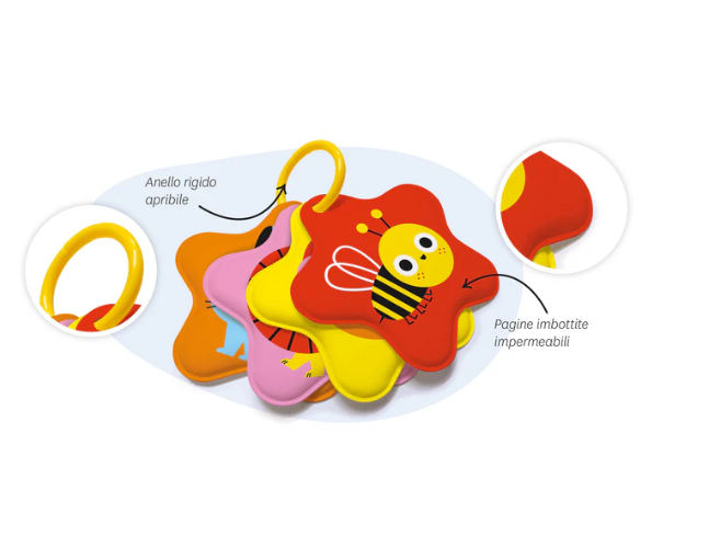 Per trasformare il bagnetto in un momento indimenticabile, un libro-bagno sagomato a forma di stella sugli animali, dal rivestimento morbido e impermeabile.
