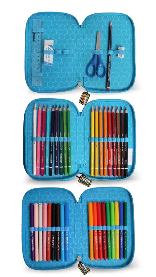 Astuccio monocerniera in EVA. Tasca interna in rete e 3 divisori interni accessoriati.