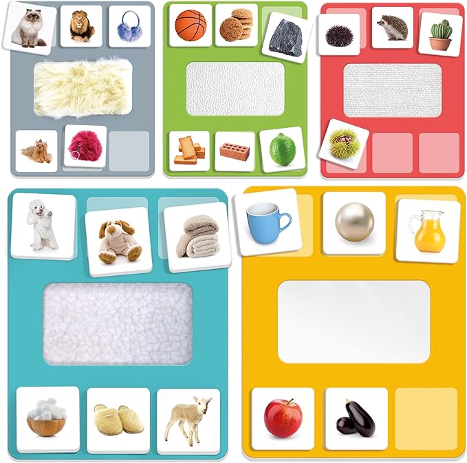 Con questo gioco, i bambini più piccoli sperimentano il senso del tatto, classificando immagini ed oggetti.