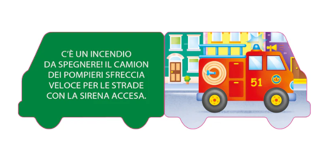 Dlin dlon! Peeee! Neno neno! Sono in arrivo Le macchinine: i libri sagomati con le ruote. Quando suona la sirena i pompieri sono pronti a partire! Quale sarà l'emergenza oggi?
