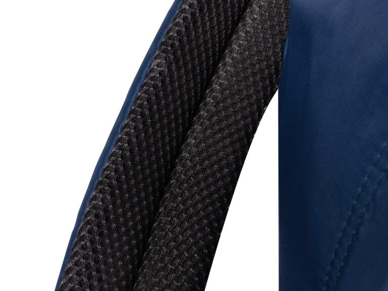 La tenuta di carico è agevolata dallo schienale imbottito e dai pratici spallacci regolabili.