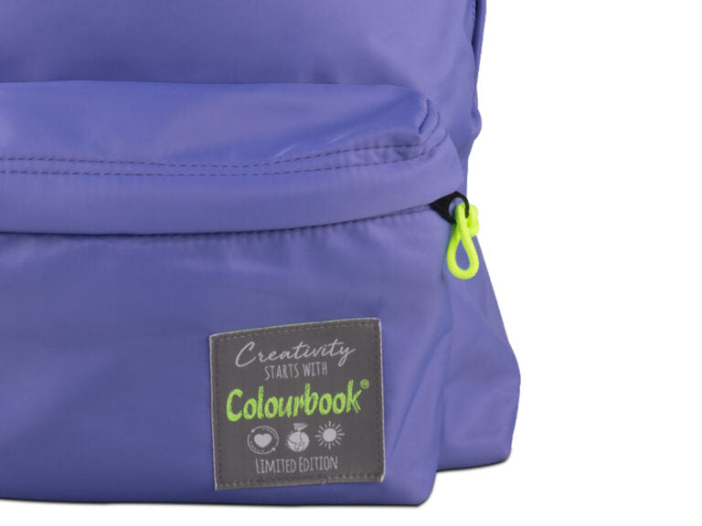 Il design minimalista è arricchito dai dettagli giallo fluo, come il cordoncino tirazip della tasca principale e della pratica tasca anteriore, su cui è riportata anche l’etichetta “Colourbook Limited Edition”.