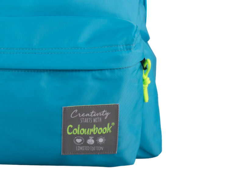 Il design minimalista è arricchito dai dettagli giallo fluo, come il cordoncino tirazip della tasca principale e della pratica tasca anteriore, su cui è riportata anche l’etichetta “Colourbook Limited Edition”.
